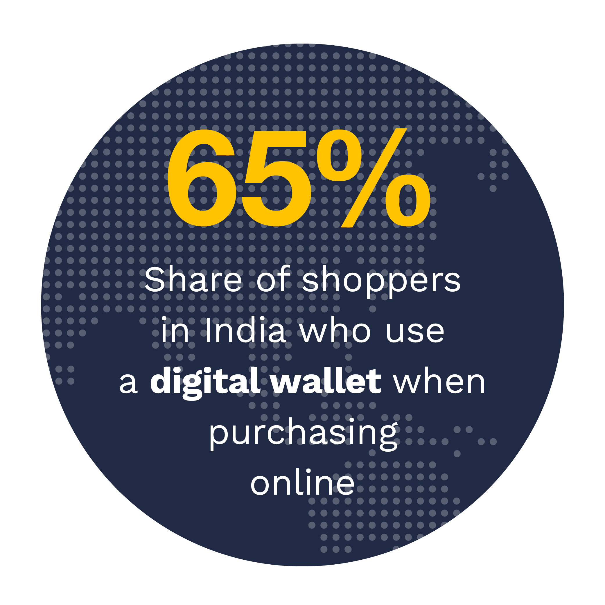 Digital wallets have become popular in India: 55% of all Indian consumers used a digital wallet to complete their last retail purchase. When purchasing online, digital wallets are the undisputed leader, with 65% of shoppers in India using this payment method. While 35% of in-store shoppers paid for their last retail purchase using cash, 39% of consumers used a digital wallet.