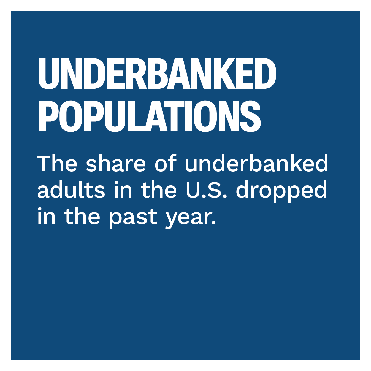 Many banks are taking steps to further reduce the population of unbanked and underbanked individuals through new programs. Wells Fargo recently announced the launch of its Banking Inclusion Initiative, a 10-year plan to improve access for historically underserved demographics such as Black, Hispanic and Native American families, who currently account for more than half of the unbanked households in the U.S. Other targets of the initiative include those who use high-cost nonbank services and would be better served using traditional banking services.