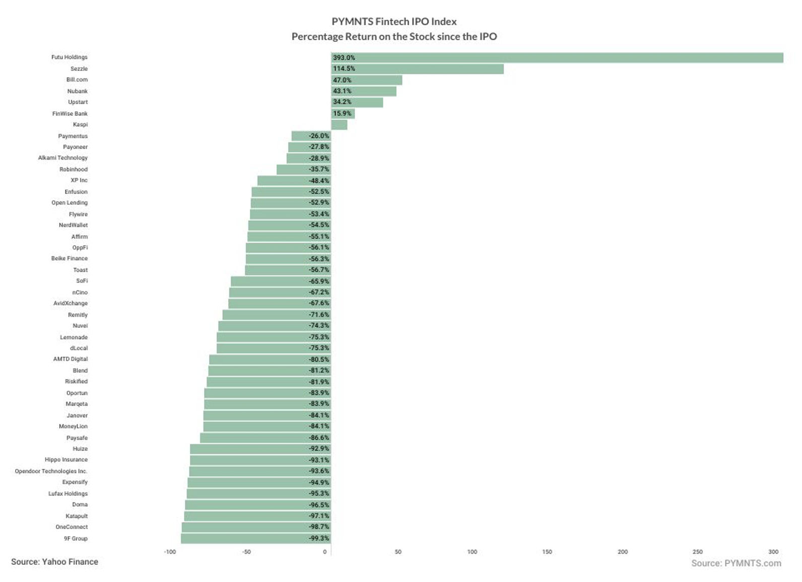 But earnings reports had some impact on the FinTech IPO Index, and gains were reserved chiefly for firms domiciled outside the U.S. as macro news from China helped goose the FinTech IPO Index slightly higher, by 0.5%.