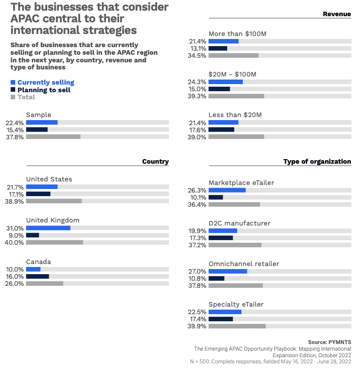 For the PYMNTS study “The Emerging APAC Opportunity Playbook: Mapping International Expansion Edition,” created in collaboration with Citcon, we surveyed 500 businesses located across the United States, the United Kingdom and Canada to get a sense of how important the APAC region is to their expansion strategies.