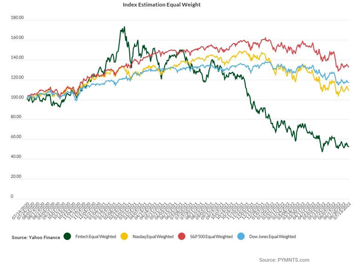 The FinTech group, as tracked by PYMNTS, was down 3% on the week, with a year-to-date performance logging a dismal decline of nearly 43%.