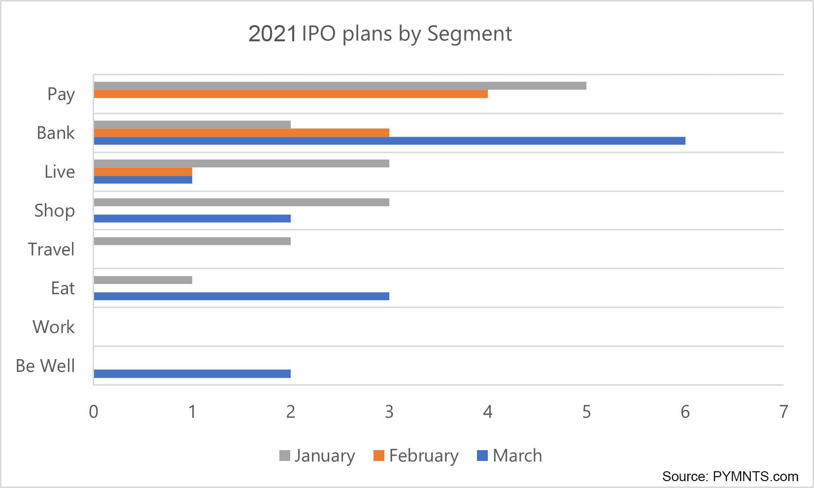 The PYMNTS SPAC/IPO Tracker finds that through the third week of March, banking/financial services-related and commerce-related announcements held sway. As evidenced in the chart below, through the month (which has not ended yet), financial services announcements totaled about half a dozen.