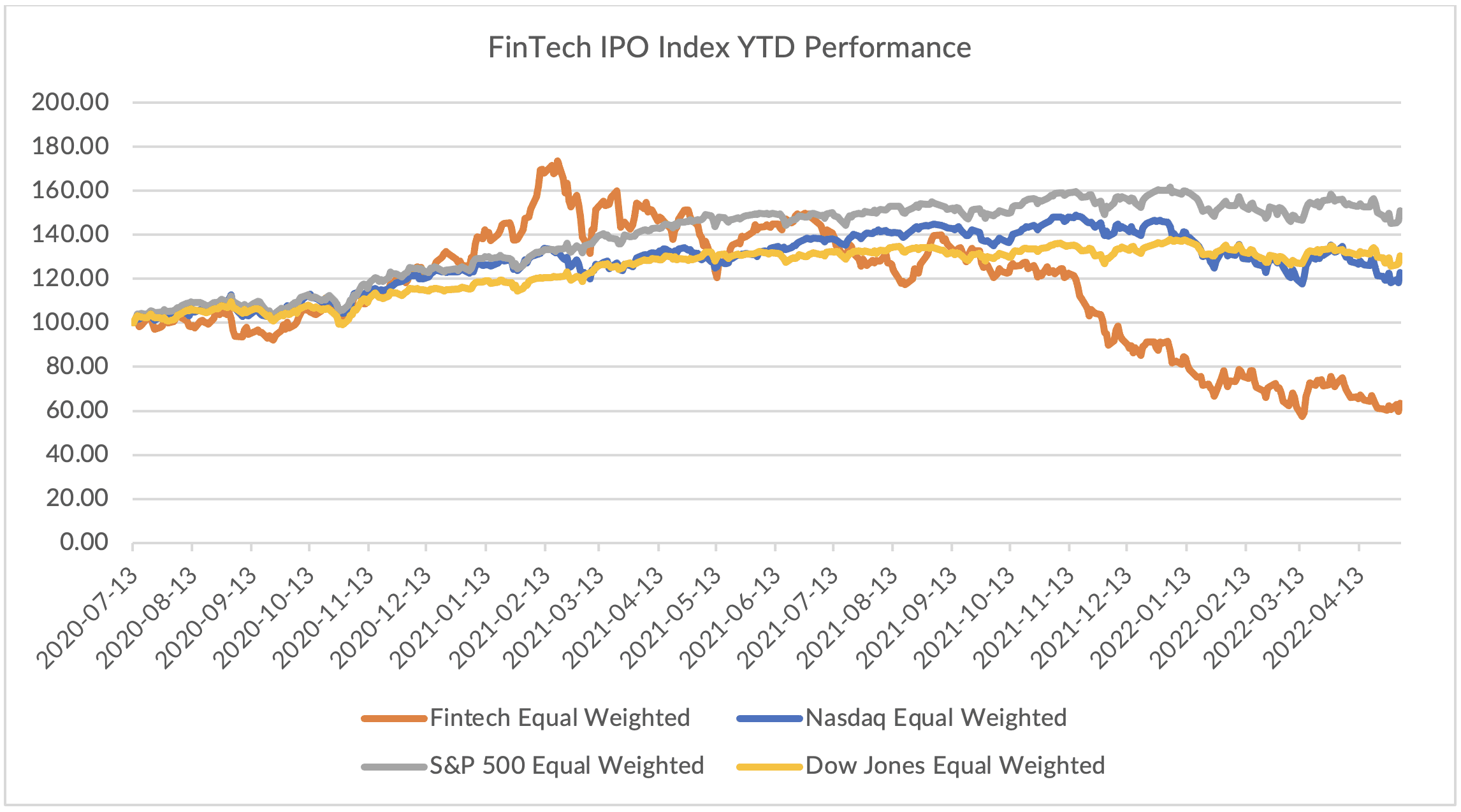 Amid a Thursday rout that saw the Nasdaq slide by 5%, our FinTech IPO Index, not surprisingly, was also swept up in the downdraft. The average name among the more than 40 tracked was down 6% in the session.