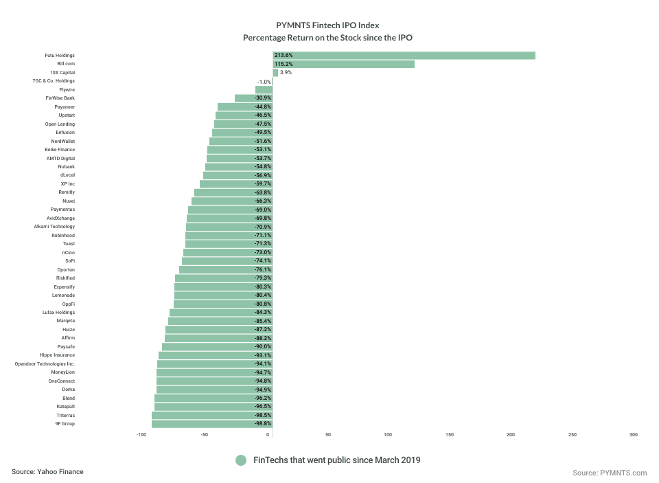 And within the FinTech IPO Stock Index, we saw gainers and losers in roughly equal measure, with double-digit movements to the upside and downside … and the result was that through the past five sessions, the Index was up 2.1%.
