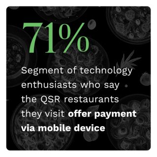 The digital shift also gave rise to another phenomenon, a new breed of consumers called technology enthusiasts, who look at digital conveniences as table stakes for their ongoing engagement with a restaurant. True to the adage, technology enthusiasts see their time as money: loyalty programs that offer discounts are slightly less popular than digital conveniences that save these consumers’ time. Restaurants and QSRs seeking to engage these consumers have a range of as many as nine digital ordering and payment features that can inspire these consumers to increase their spending.
