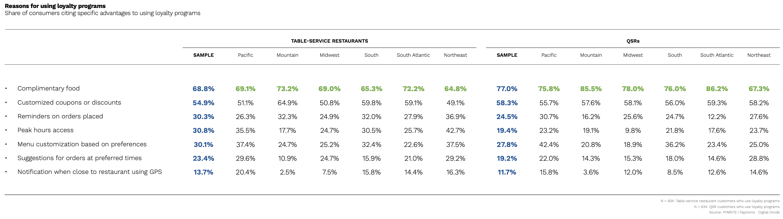According to data from the March/April edition of PYMNTS’ Digital Divide series, “The Digital Divide: Regional Variations in U.S. Food Ordering Trends and Digital Adoption,” created in collaboration with Paytronix, 58% of loyalty program members cite customized coupons or discounts as a reason for using these programs at quick-service restaurants (QSRs).