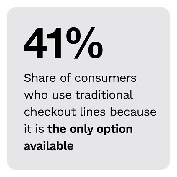 PYMNTS research found that only one-third of consumers prefer traditional checkout lines over innovative alternatives, and over 80% of consumers want to try nontraditional checkout alternatives, such as self-service. Yet self-service use lags behind consumer interest, and the reasons for the gap are