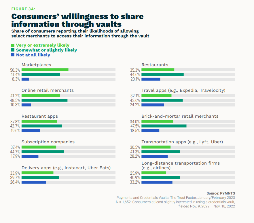 Fortunately for eCommerce retailers and marketplaces, the PYMNTS/FIS collaboration, “Payments and Credentials Vault: The Trust Factor,” finds that a sizable portion of surveyed consumers are very or extremely likely to allow select merchants to access their payment information through a credentials vault.