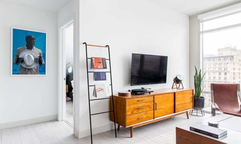 The “more than that” additions are upgraded versions of features that are common in short-term housing geared toward business travelers. Kitchenettes are full kitchens at Lyric properties, and living rooms come with visually pleasing modern furnishings. Rooms are additionally stocked with extra hip details, like pour-over coffee from local roasters, locally-produced art and vinyl records. The rooms planned for the city range from 500-square-foot studios to 1,400-square-foot one-bedroom apartments and are priced like a 4-star hotel room would be in their host city. A Chicago apartment goes for about $242 per night on, and the rooms in New York will range from $200 to $500 per night.