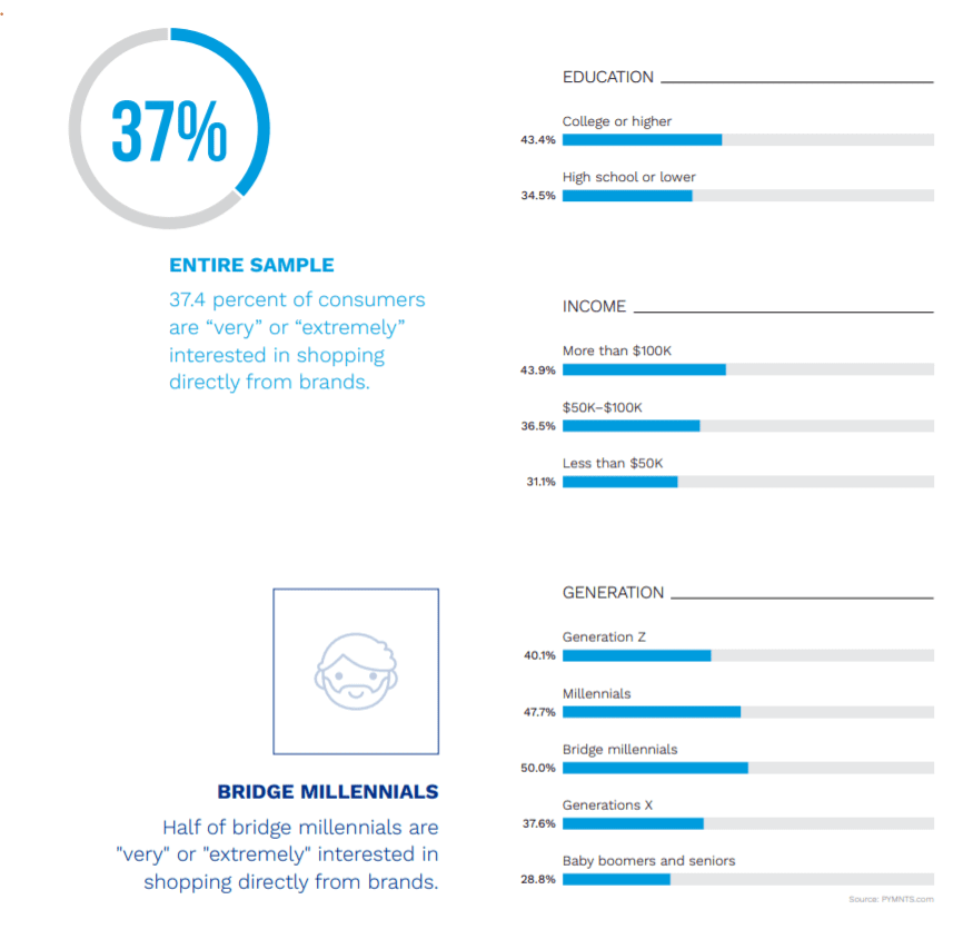 For example, 43.9 percent of those making more than $100,000 told PYMNTS that they’re interested in D2C purchases versus only 31.1 percent who earn less than $50,000.