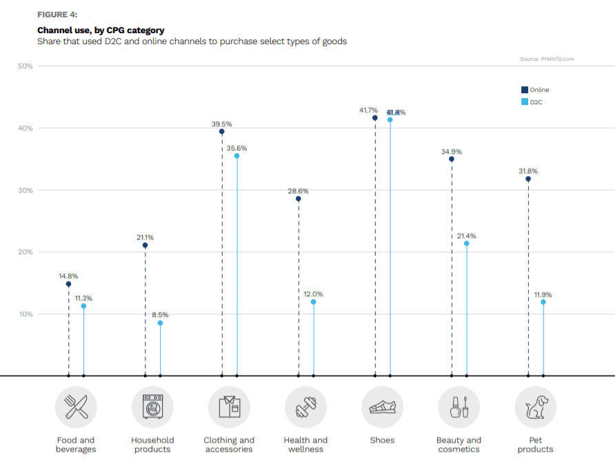 Interestingly, a separate PYMNTS study entitled D2C and the New Brand Loyalty Opportunity, done in conjunction with sticky.io, found that consumers most commonly buy shoes, clothing and accessories via D2C channels. For example, D2C channels accounted for 41.1 percent of all shoe purchases and 35.6 percent of clothing and accessory buys. By contrast, D2C only accounts for 8.5 percent of household goods purchases. This suggests that D2C does well in areas where consumers have strong brand preferences.