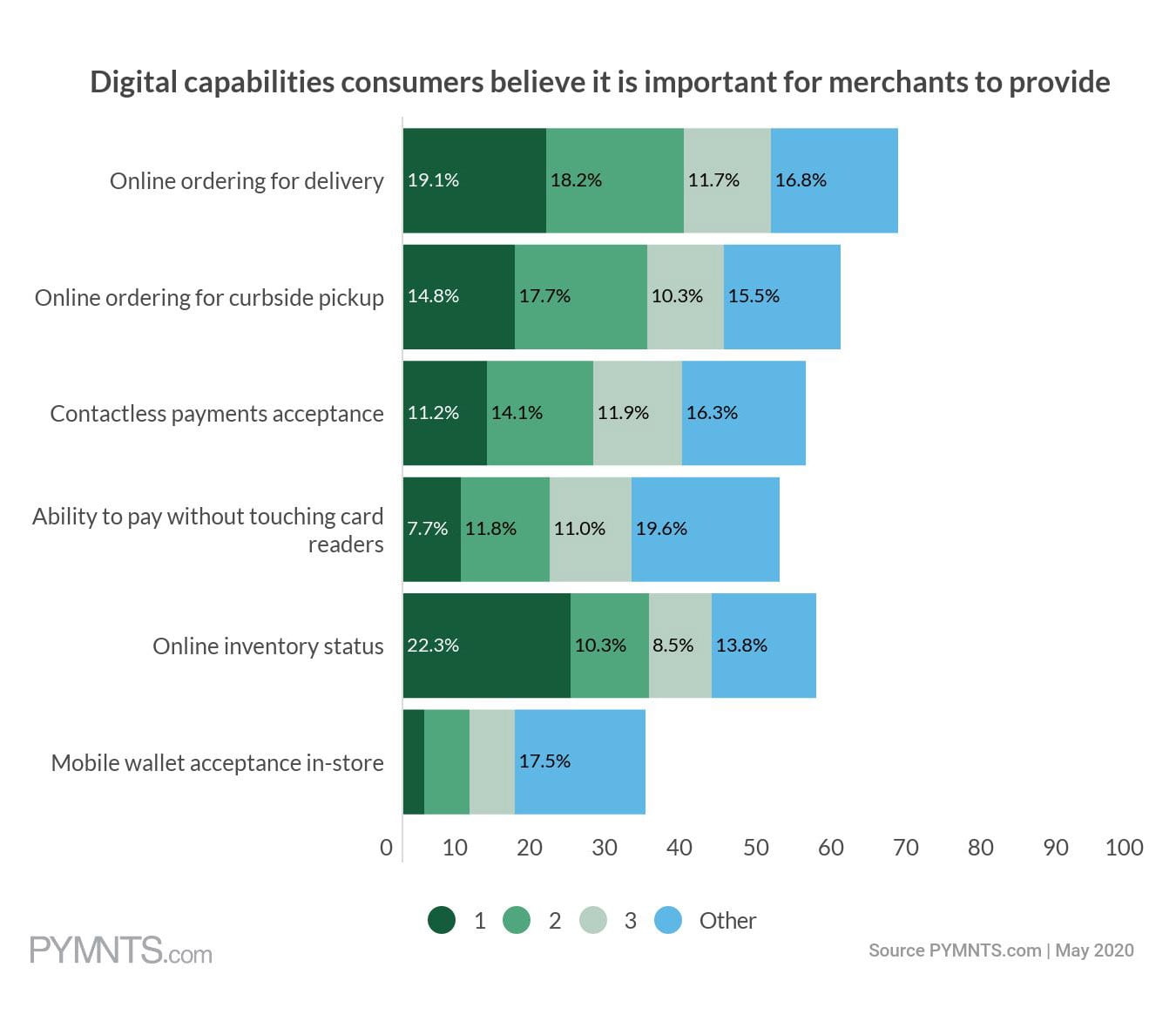 Though the new wave seems almost certain to push consumers even more fully to digital interaction, merchants have spent the past half-year or so preparing for that eventuality. Among those that PYMNTs surveyed, 79 percent report the merchants they shop with have added or improved their digital-first capabilities. Curbside pickup was a leading area — with 55 percent reporting it has been added on.