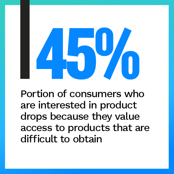 not the only driver. Forty-five percent of consumers who are interested in product drops also prize access to products that are difficult to obtain, and 48 percent are interested in product drops because they can get access to high-quality products.