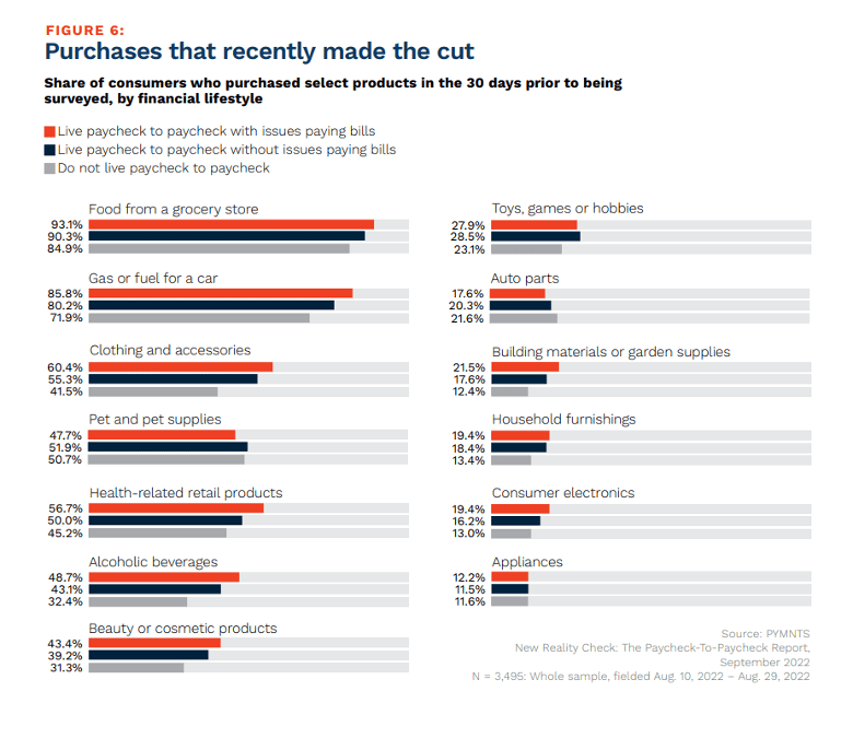 And essentials have been the priority as the cost of living continues to outpace wage growth, meaning that industries relying on discretionary spend are vulnerable. For example, spontaneous clothing purchases seem to be taking a backseat, as noted in PYMNTS’ collaboration with LendingClub, “The Paycheck-to-Paycheck Report: Year in Review.”