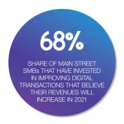 Our research shows that although the majority of Main Street SMBs feel their local communities are far from where they were 18 months ago, that does not mean they are struggling. Many of them have found new, innovative ways to drive sales in an increasingly digital-first economy — and those that have are faring far better than their peers. Main Street SMBs that have invested in touchless payments are not only 49 percent likelier to have seen their revenues increase in 2020, but are also five times likelier to expect their revenues to increase in 2021. The same can be said of those that have invested in software to support digital transactions.