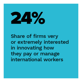 Interest in innovating payment methods indicates that firms face challenges paying and managing their international workforce, with many seeking a technology solution to streamline cross-border payments.