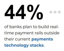 To alleviate the financial and operational challenges of implementing real-time payment systems, many FIs use third-party payment providers for assistance. According to the report, 44% of banks plan to build their real-time payment capabilities outside their current payment systems, with smaller institutions especially likely to seek third-party partnerships. These collaborations can help smaller banks overcome the technical and financial barriers of upgrading their systems.