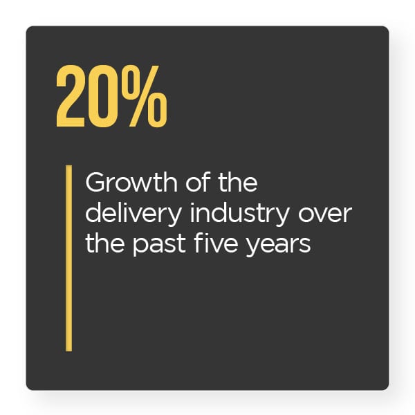 The delivery sector is setting record revenues as dining rooms are operating at limited capacity, but this trend was in the works long before the pandemic began. A study found that the industry expanded by 20 percent over the past five years, with online food delivery revenue expected to hit $24 billion by 2023. This surge is in large part due to the popularity of third-party ordering platforms like DoorDash, Grubhub, Postmates, Uber Eats and the pizza-focused Slice.