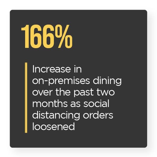 QSRs are also improving their in-house ordering systems to make up for declines in walk-in traffic. Burger King, for example, unveiled plans for a new store concept that features touchless ordering as its centerpiece. The restaurant model consists of pickup windows, park-and-order lanes and drive-thrus, and customers’ orders are delivered via conveyor belts to limit person-to-person contact and reduce the risk of COVID-19 infection.