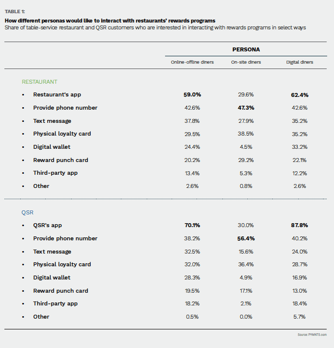 How consumers prefer to receive these rewards also reflects the shift to ordering online, with large majorities of both exclusively digital diners and those who order both online and offline saying they would prefer to access rewards through mobile apps.