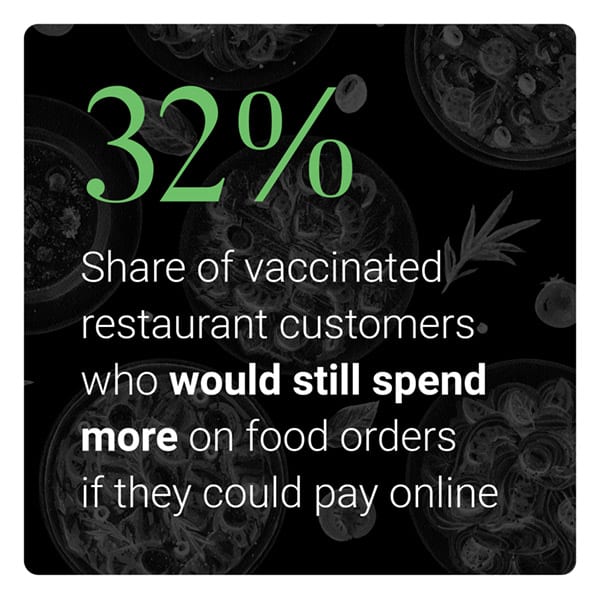 This is not to say that restaurants will be able to do away with the digital ordering capabilities they have acquired during the pandemic, however — far from it. Such features will continue to play a key role in driving restaurant customer spend for the foreseeable future, as evidenced by the fact that 32 percent of vaccinated restaurant customers say they would spend more on their orders if they could pay online. There are also 40 percent of vaccinated restaurant customers who would spend more if they could earn loyalty and rewards for their orders, underscoring the continued importance that loyalty and rewards programs are likely to play in the post-pandemic market.