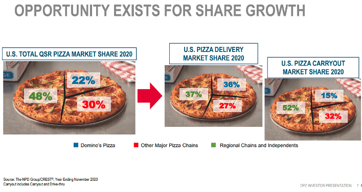According to Domino’s third-quarter investor presentation, carryout same-store sales were up 20% from a year ago and 55% since 2019.