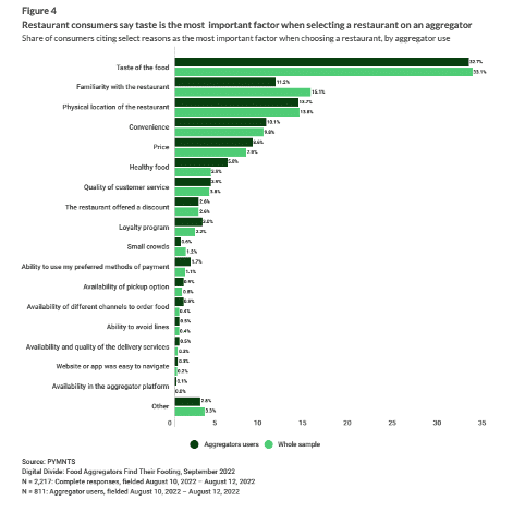 “Since consumers care more about the quality and taste of their food than factors such as price or branding, this can be a great opportunity for restaurants to expand their reach and focus on what they do best: the food itself,” the report added, noting the opportunity that exists, for example, for a high-end restaurants to offer well-made cuisine to a takeout customer that they might not normally do for the regular dine-in crowd.