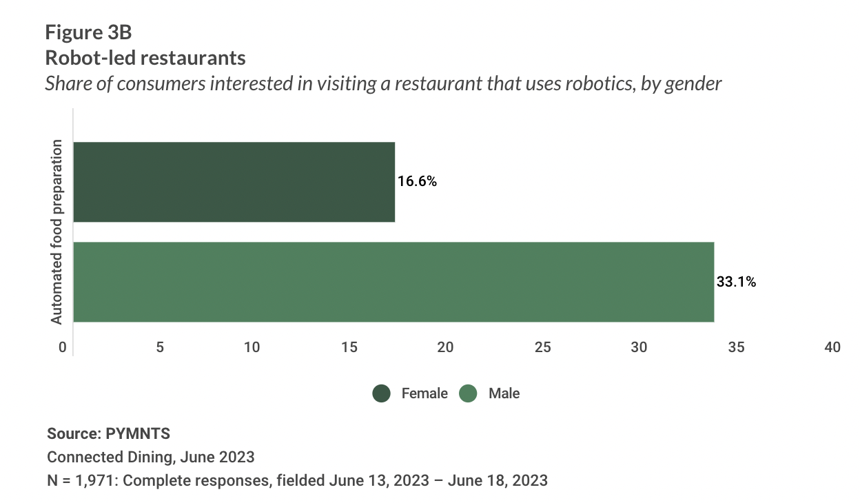 The study reveals that, while 1 in 3 men are interested in visiting a restaurant that uses robotics, only half that share of women said the same.