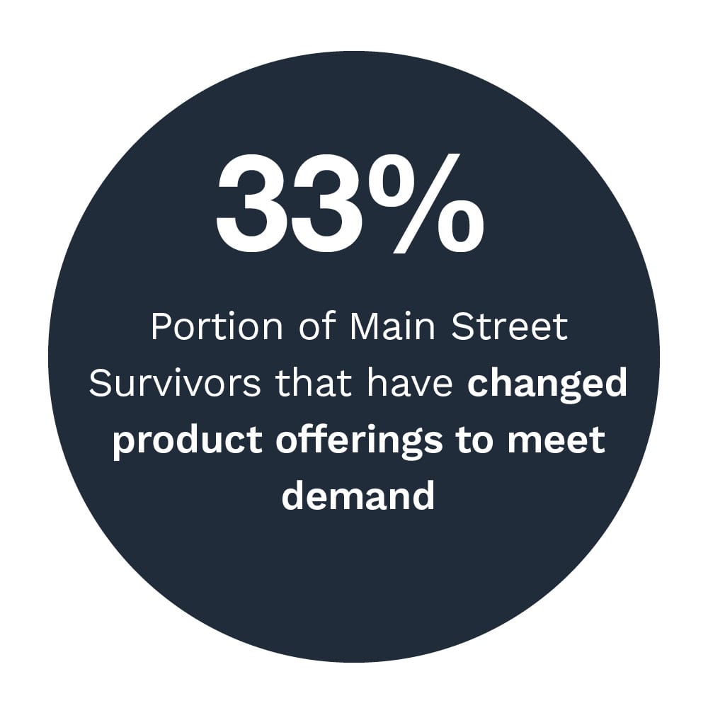 Many Main Street Survivors are also selling entirely different items than they did before the crisis’s onset. Our survey reveals that