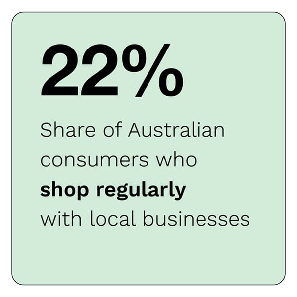 Not only do 55 percent of Aussies regularly shop with local businesses, but 22 percent of them report shopping with such stores more than they shop with any other type of retailer. This is far more than the 32 percent and 41 percent of consumers who shop locally in the U.S. or the U.K., respectively.