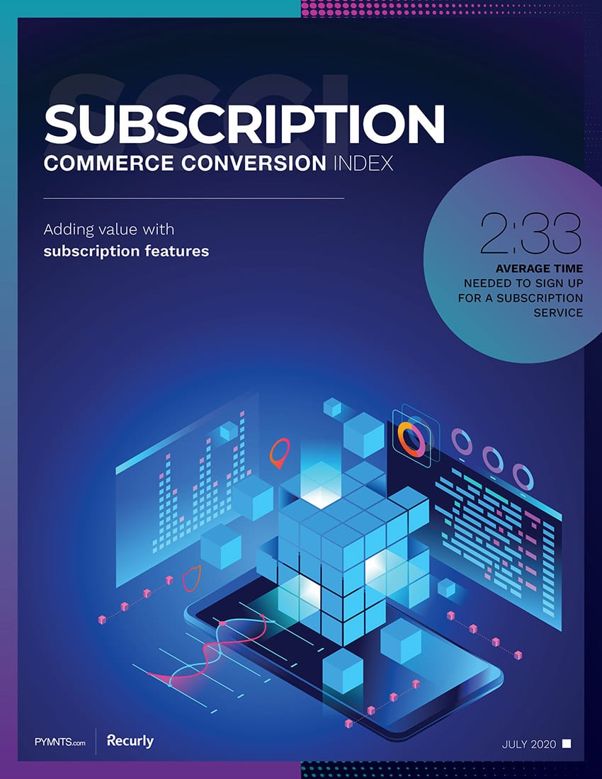 PYMNTS’ research shows that nearly three-quarters of the U.S. adult population — roughly 182 million consumers — subscribed to at least one service in July 2020, a 9 percent increase from February 2020. Nearly half of these new subscribers say they will keep their services after the pandemic has ended. The Subscription Commerce Conversion Index, a PYMNTS and Recurly collaboration, describes how merchants are improving services to turn new customers into long-term subscribers, as retaining subscriber loyalty now requires faster, more flexible experiences.