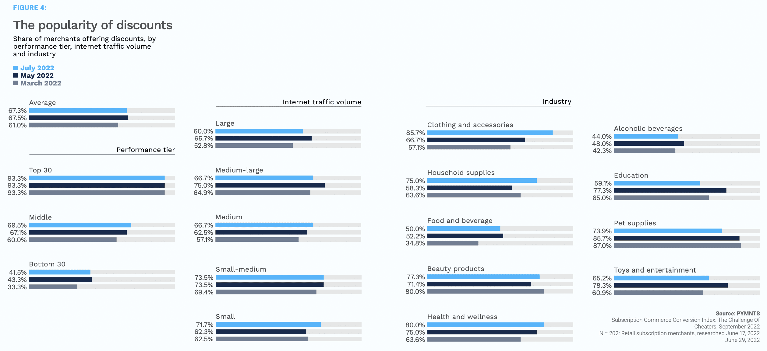 Research from the September edition of PYMNTS’ Subscription Commerce Conversion Index study, “The Subscription Commerce Conversion Index: The Challenge of Cheaters,” created in collaboration with sticky.io, which drew from a survey of more than 200 U.S. retail subscription merchants, found that 93% of the top 30 offered discounts, compared to just 70% of middle-performing merchants and 42% of bottom performers.
