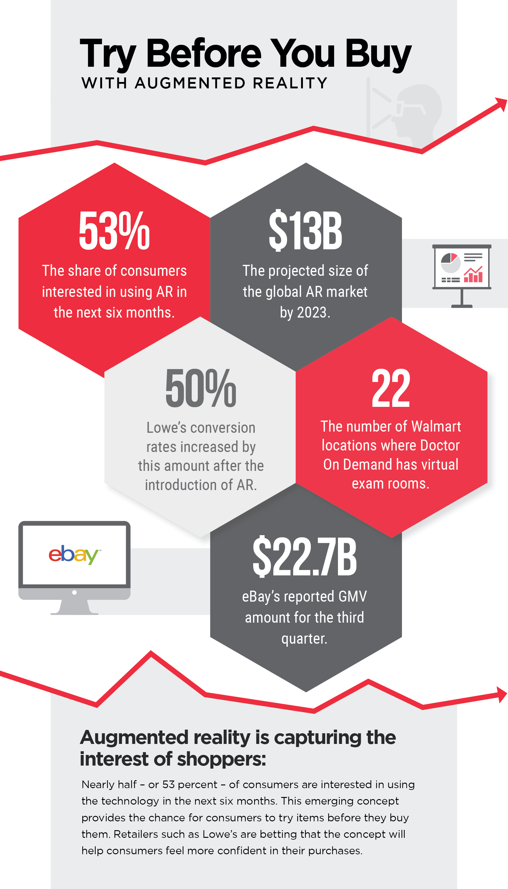 New technologies are enabling consumers to experience products in new ways before they purchase them: Lowe’s, for instance, is looking to use augmented reality (AR) technology to have consumers feel more confident about their purchases. At the same, Doctor On Demand is bringing virtual exam rooms to Walmart locations. In addition, eBay reported its third-quarter financial results, with gross merchandise value (GMV) of just under $23 billion.