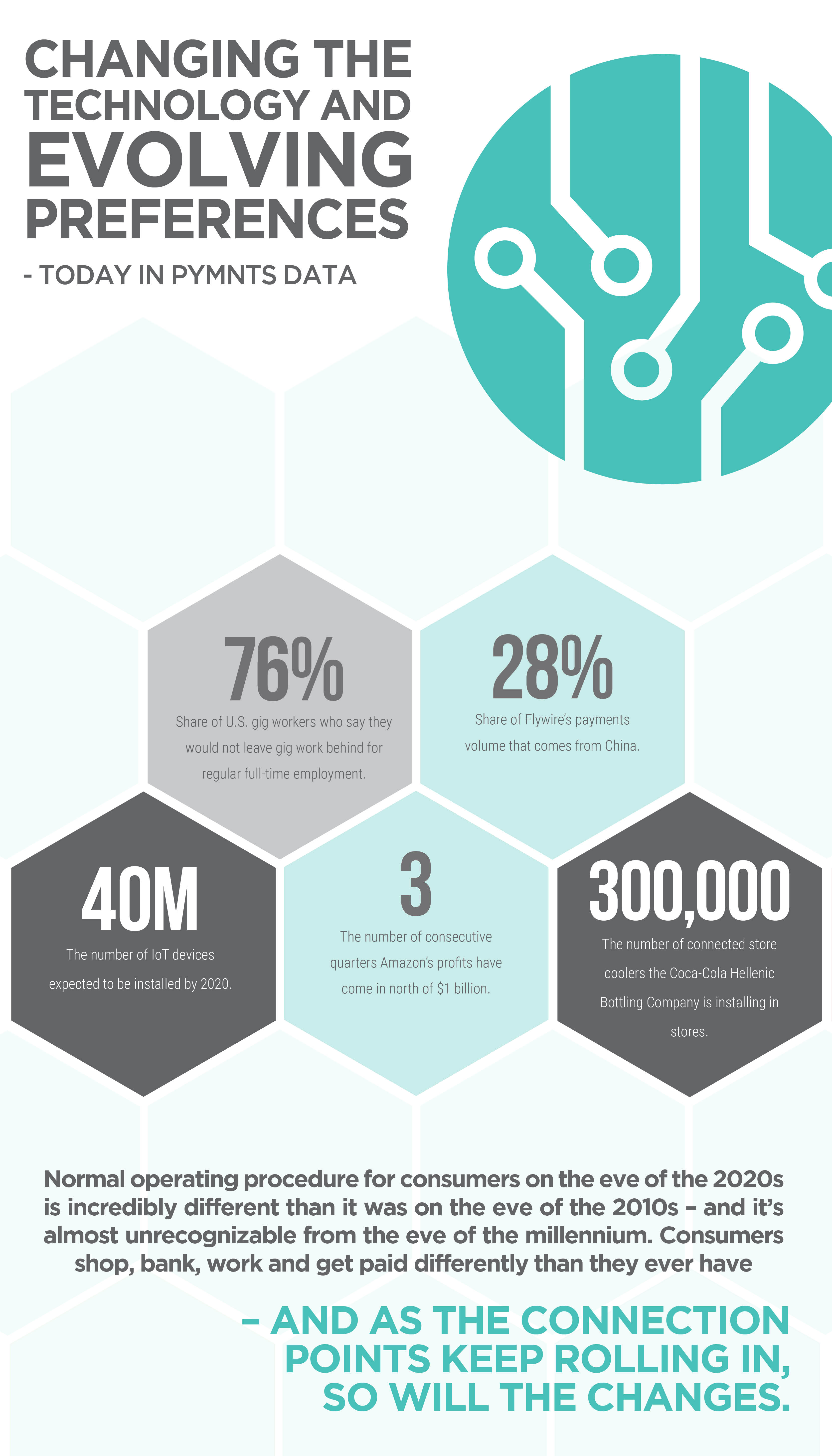 Normal operating procedure for consumers on the eve of the 2020s is incredibly different than it was on the eve of the 2010s – and it’s almost unrecognizable from the eve of the millennium. Consumers shop, bank, work and get paid differently than they ever have – and as the connection points keep rolling in, so will the changes.