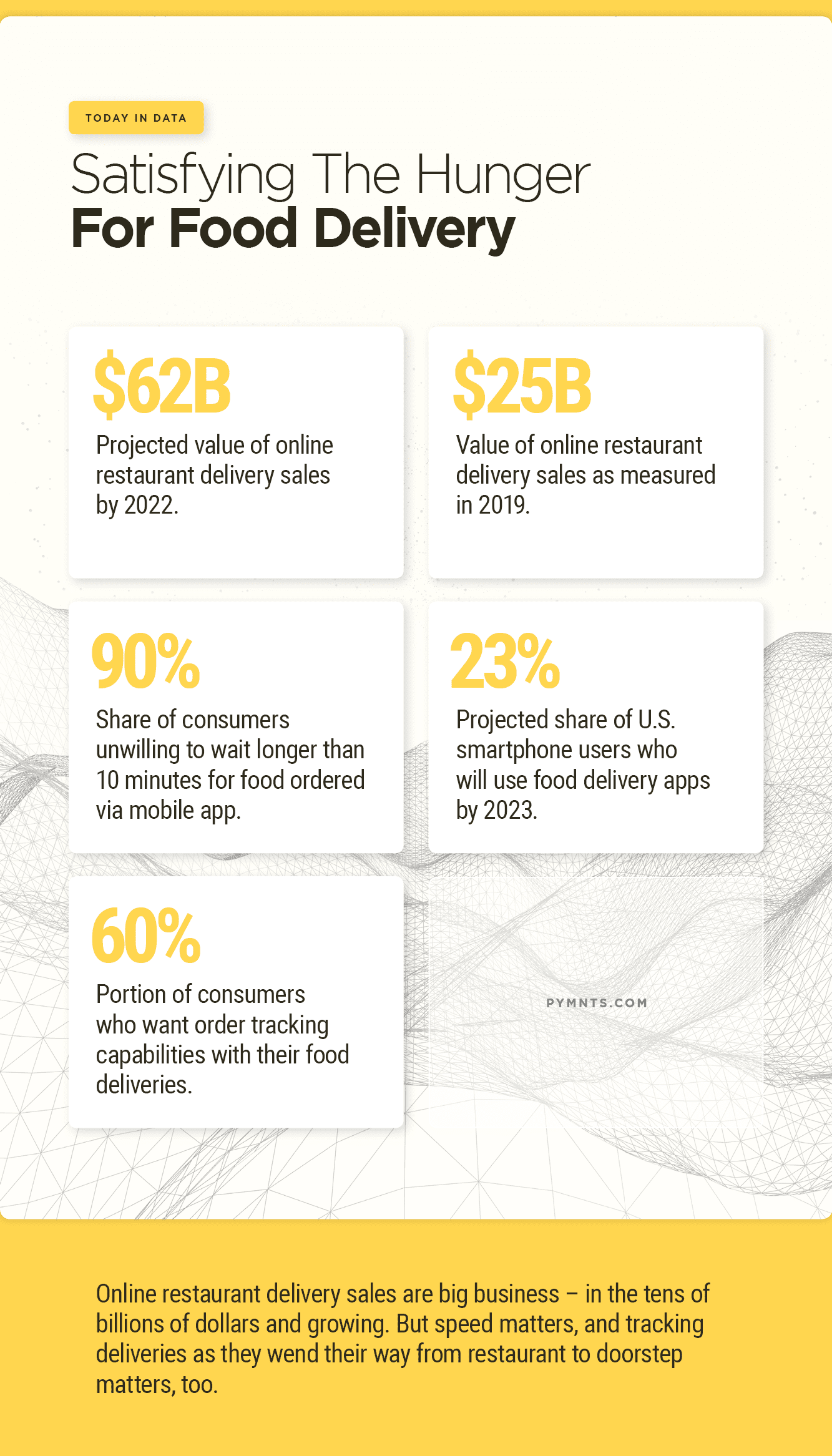 No one likes to be hangry – that uncomfortable feeling of anger mixed with hunger. It’s a common feeling when you’re left waiting for the pizza, salad or tacos to be delivered. Technology to the rescue, as evidenced in the Order to Eat Tracker. Quick-service restaurants and fast casual establishments are continuing to offer ways to order online – and track deliveries online – while also offering loyalty rewards in the process. Order volumes are up 130 percent as measured between 2016 to 2018, indicating that the appetite for delivery is only increasing.