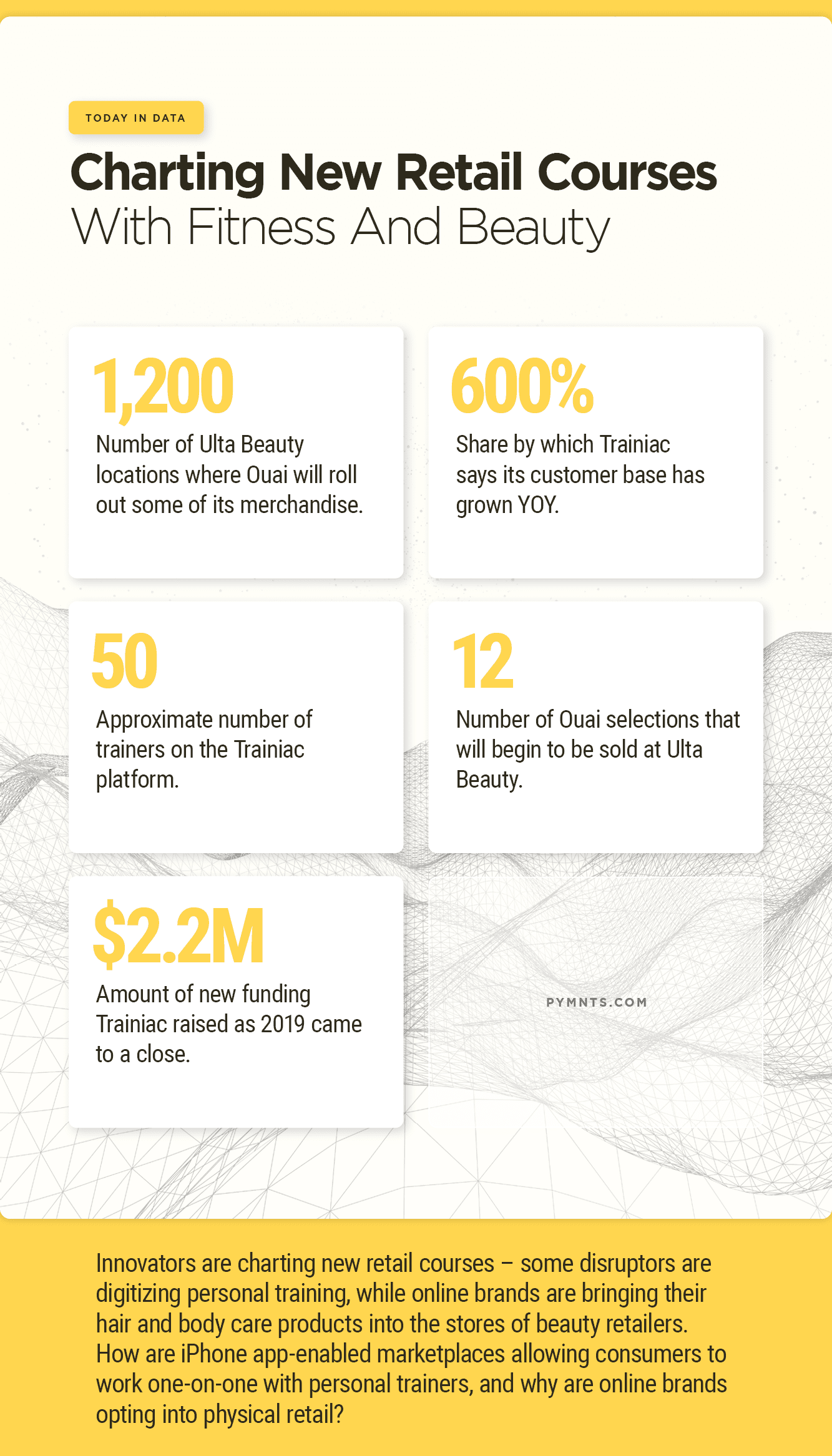 iPhone app-enabled marketplaces such as Trainiac are letting consumers work one-on-one with a personal trainer. The trainer, in turn, helps the customer make and keep their fitness goals over the long term. And, in beauty retail, online hair and body care brands such as Ouai are growing their presence in the physical world by bringing their products into brick-and-mortar stores like Ulta Beauty. All this, Today in Data.
