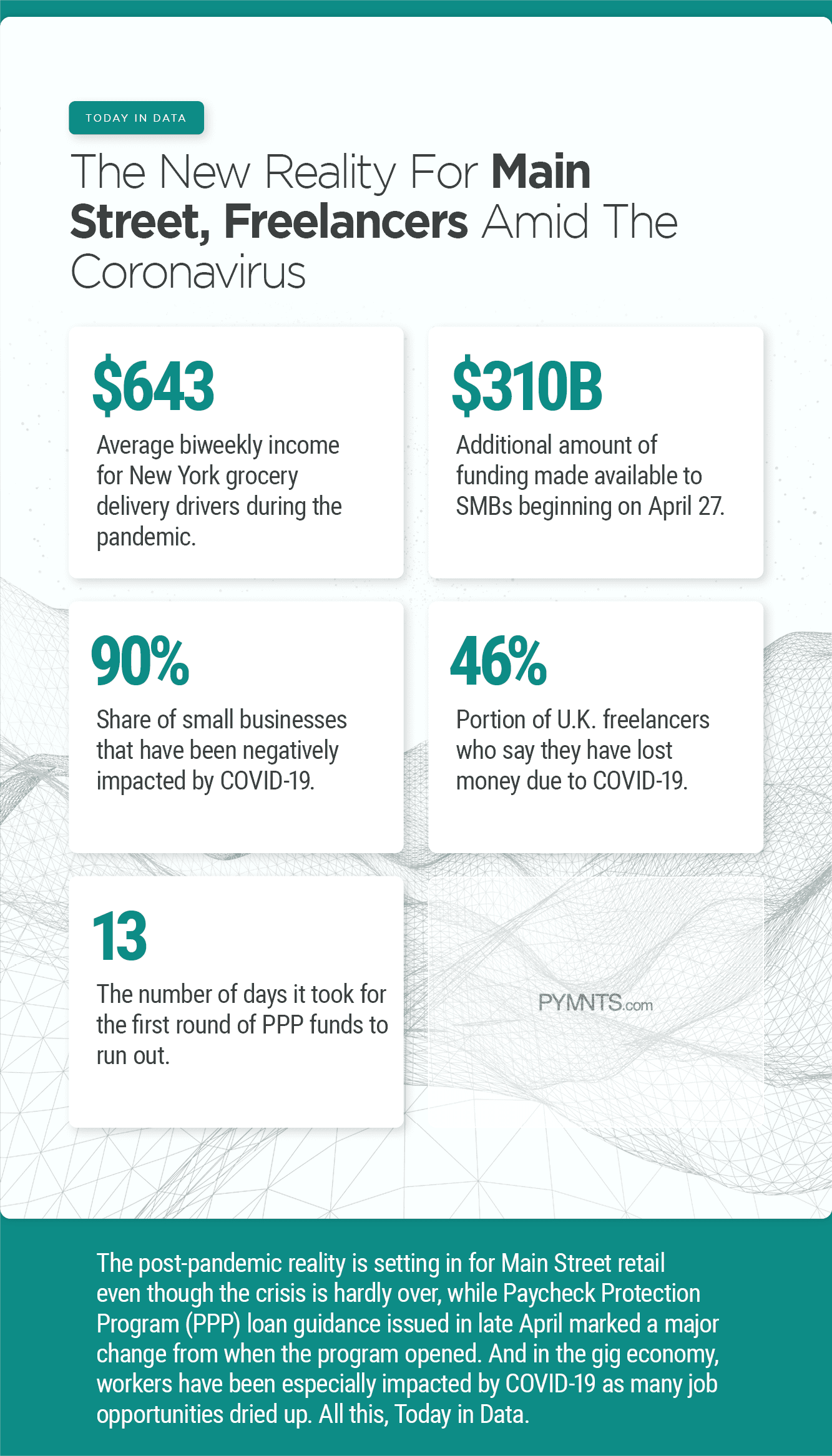 See More In: Commerce, Coronavirus, COVID-19, data, freelancers, gig economy, Main Street, News, payments, PPP, Retail, SMBs, Today in Data