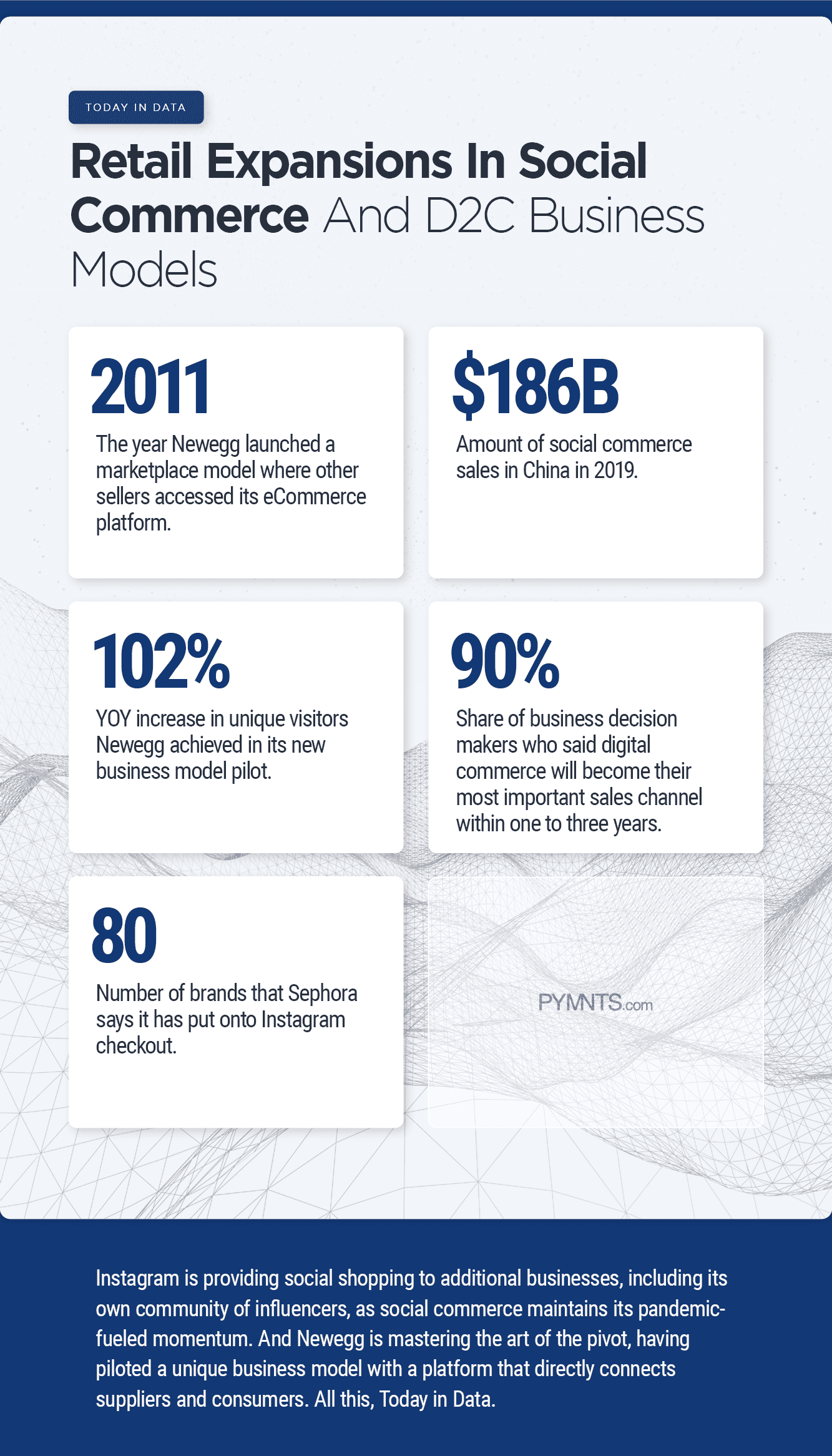 Instagram is providing social shopping to additional businesses, including its own community of influencers, as social commerce maintains its pandemic-fueled momentum. And Newegg is mastering the art of the pivot, having piloted a unique business model with a platform that directly connects suppliers and consumers. All this, Today in Data.