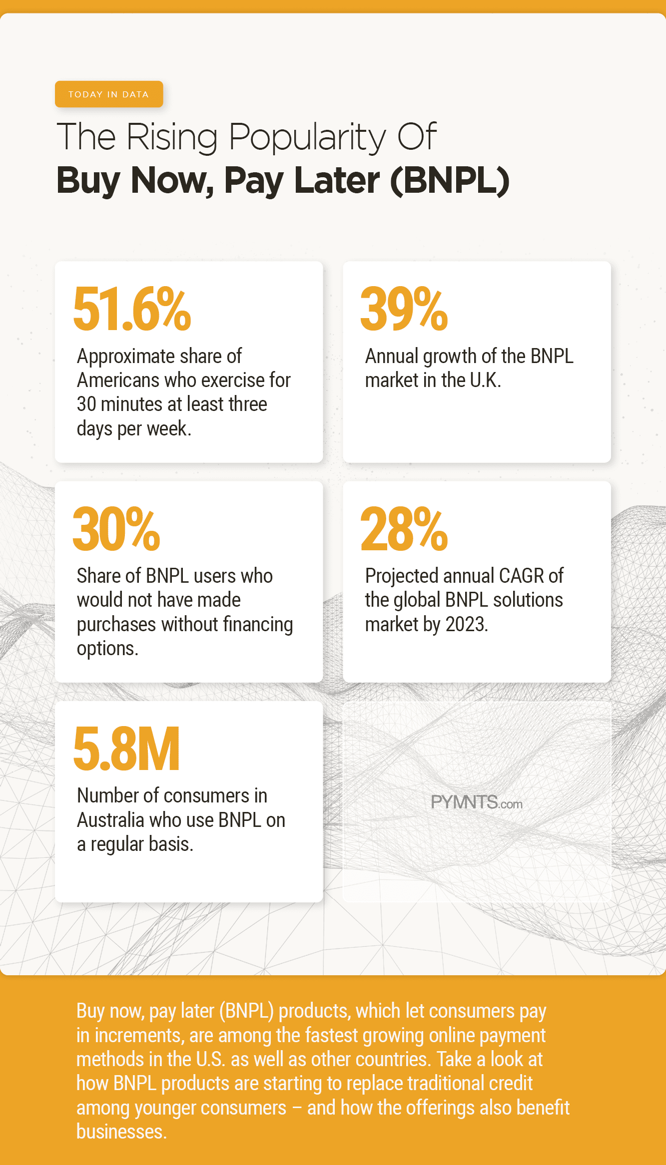 Buy now, pay later (BNPL) products, which let consumers avoid paying at the point of purchase and instead allow them to pay in increments, are more popular than ever before. In fact, it’s the fastest-growing online payment method in the U.S. and around the world, as well as other countries, and is even starting to replace traditional credit among younger consumers. The services benefit companies, with one provider finding that receipt sales rose for the retailers that offered BNPL. All this, Today in Data.