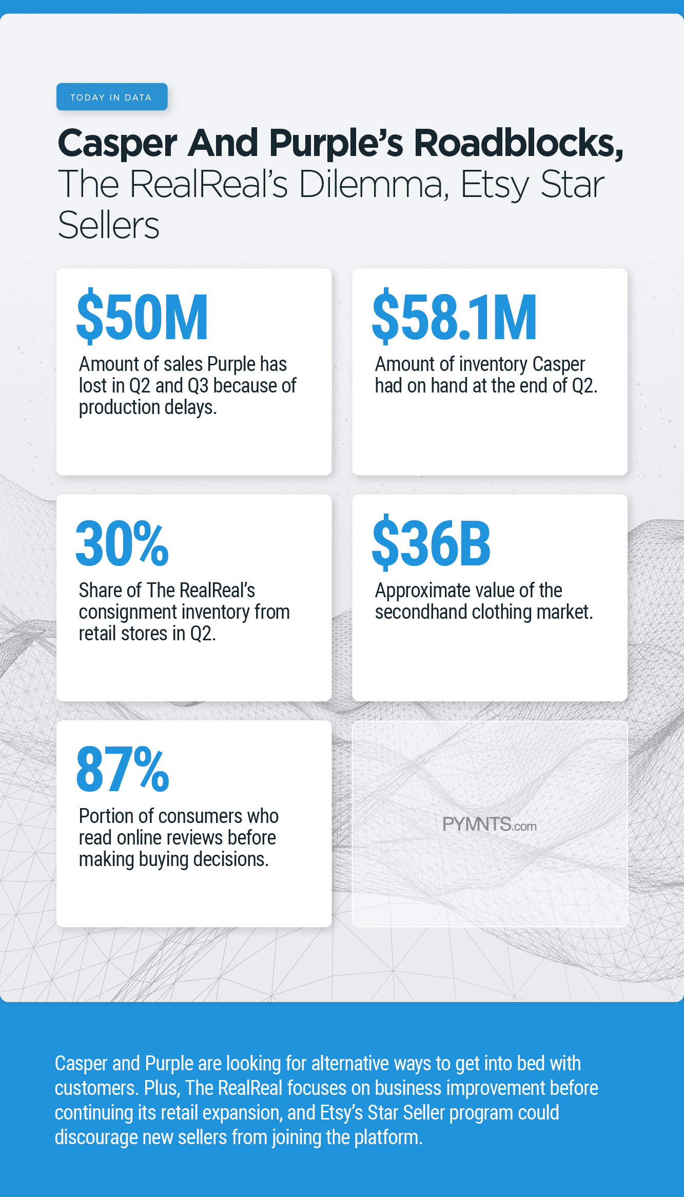 Casper and Purple are looking for alternative ways to get into bed with customers. Plus, The RealReal focuses on business improvement before continuing its retail expansion, and Etsy’s Star Seller program could discourage new sellers from joining the platform.