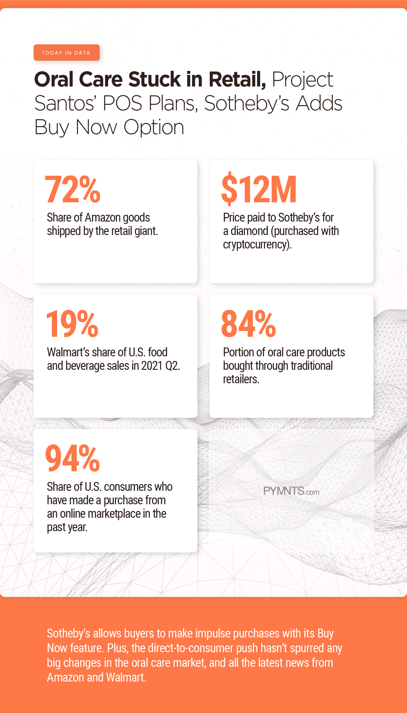 Oral Care Stuck in Retail, Project Santos’ POS Plans, Sotheby’s Adds Buy Now Option