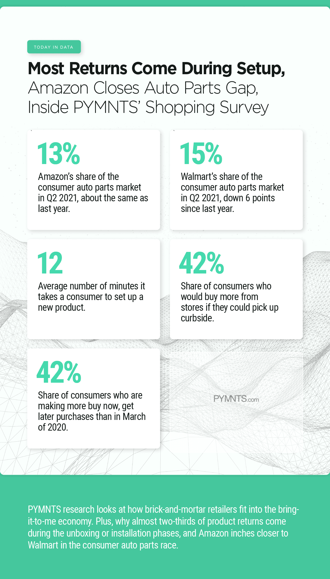 Most Returns Come During Setup, Amazon Closes Auto Parts Gap, Inside PYMNTS’ Shopping Survey