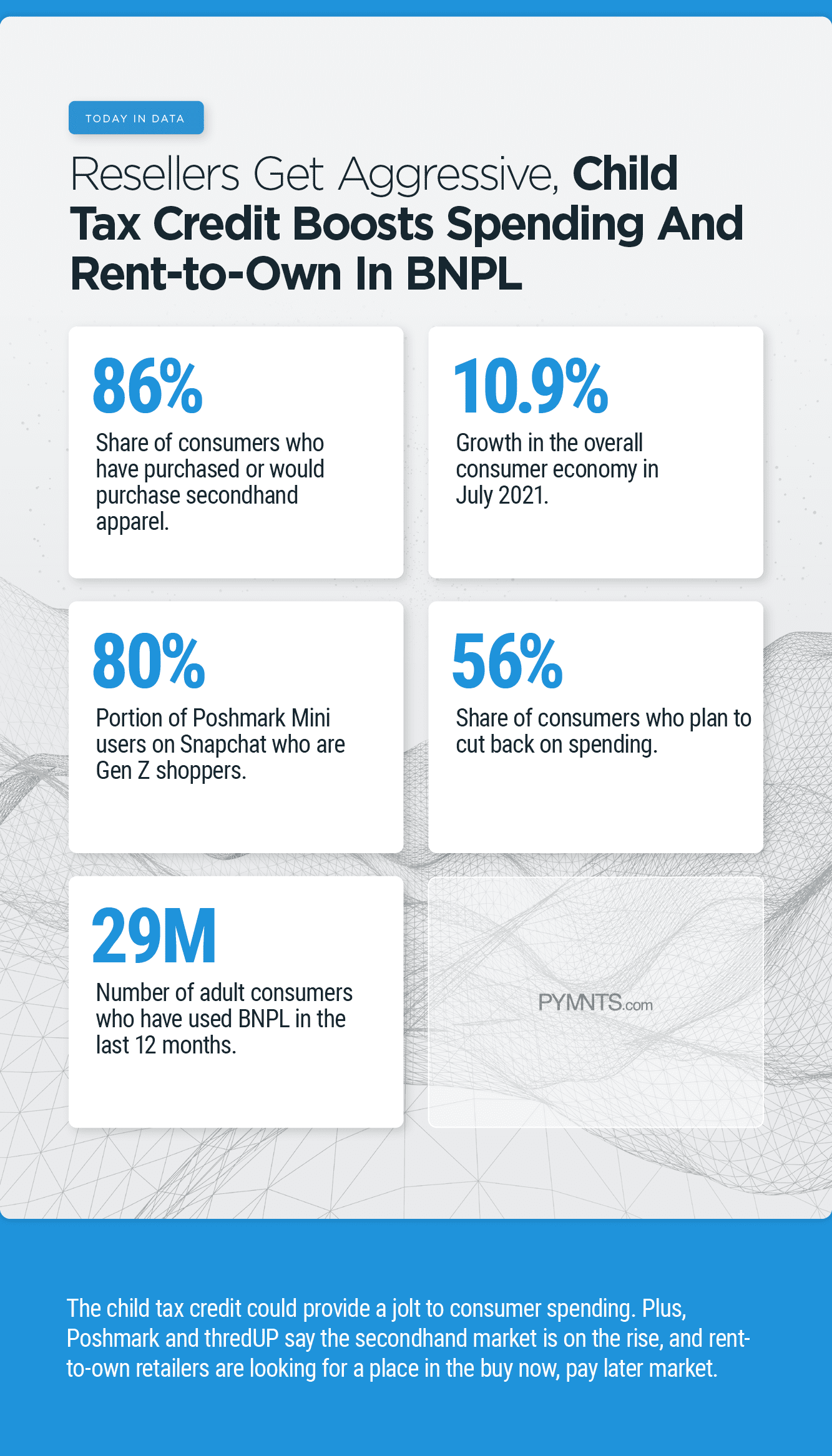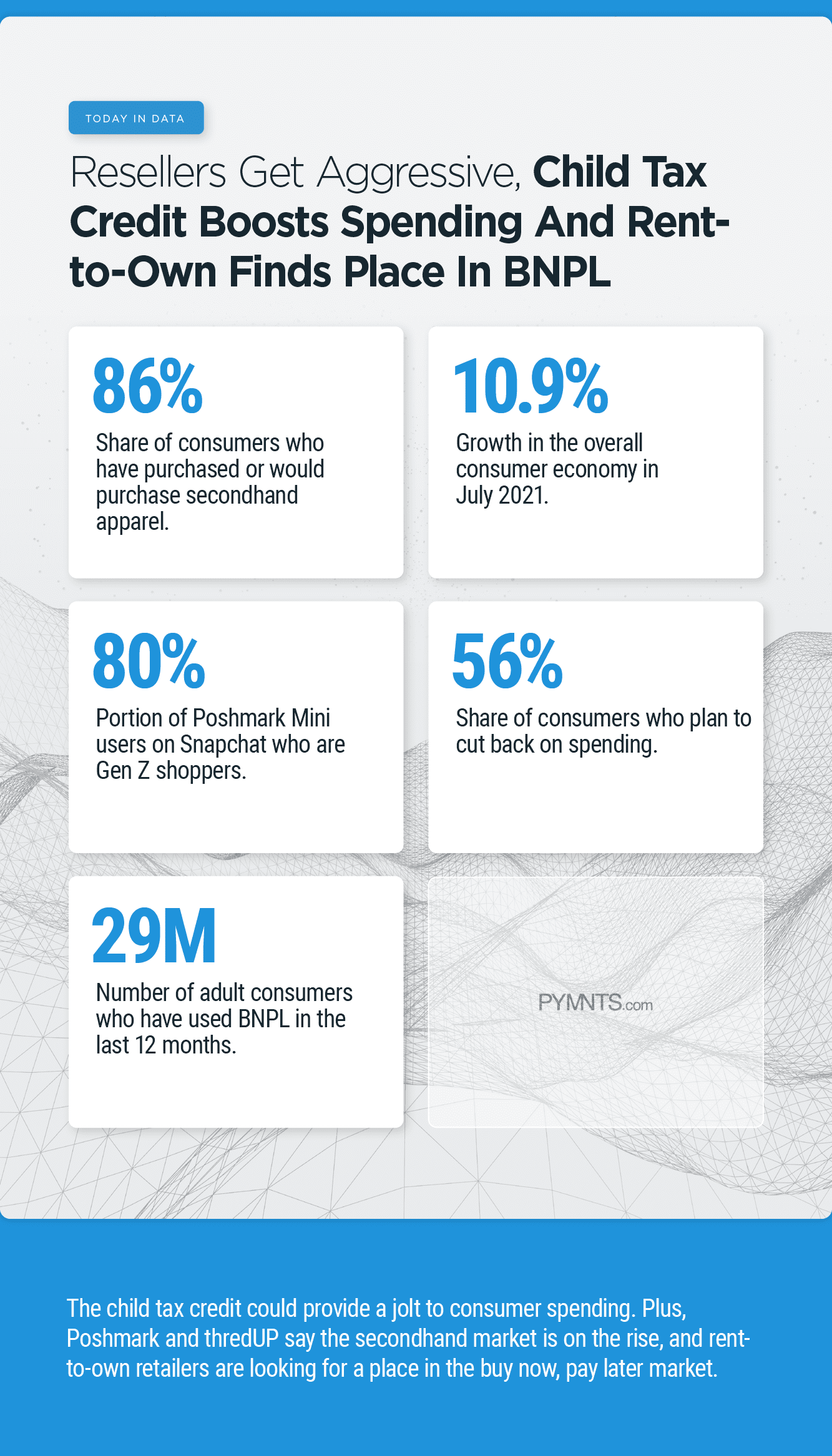 The child tax credit could provide a jolt to consumer spending. Plus, Poshmark and thredUP say the secondhand market is on the rise, and rent-to-own retailers are looking for a place in the buy now, pay later market.