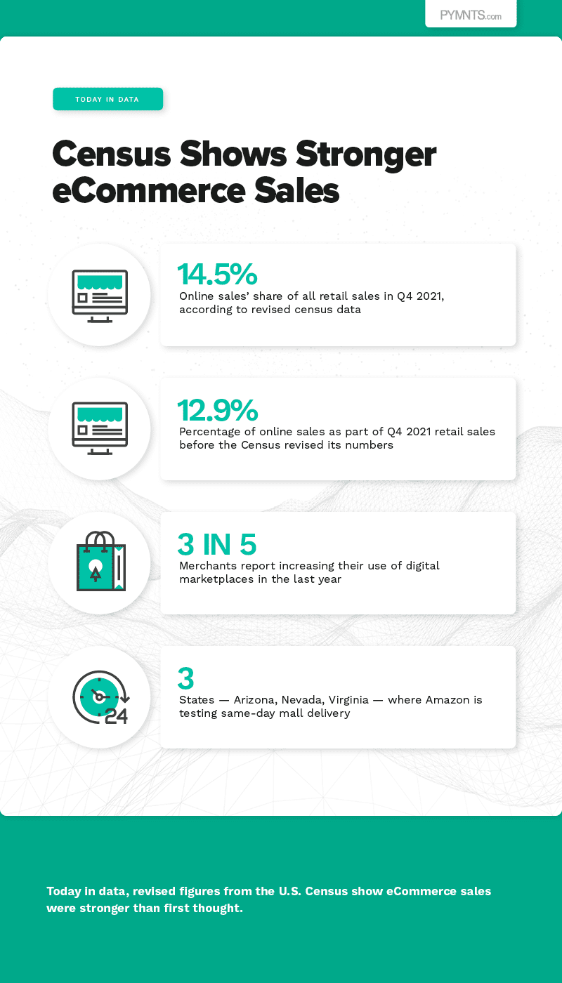 Today in data, revised figures from the U.S. Census show eCommerce sales were stronger than first thought.