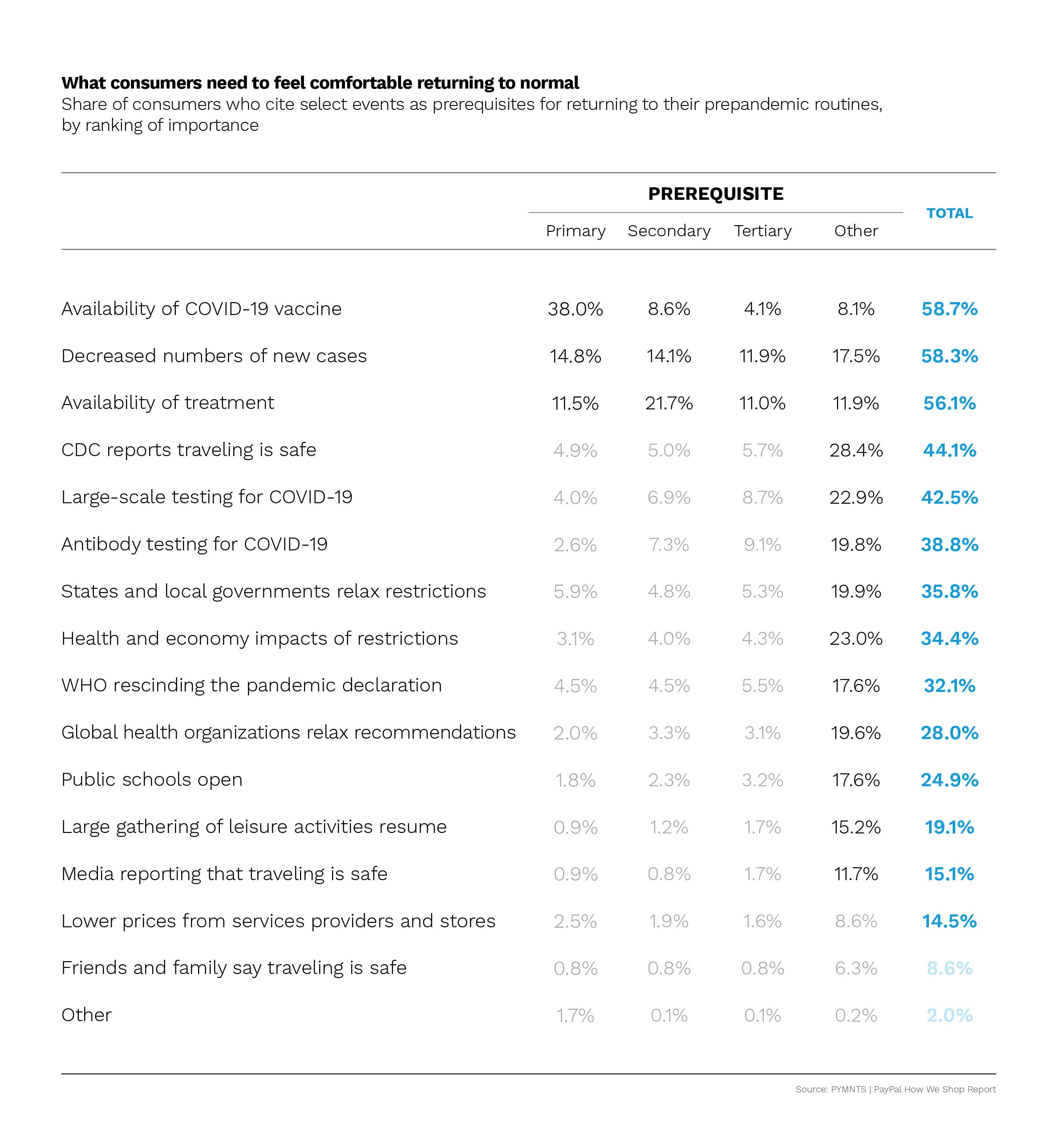 Because a vaccine is, notably, what consumers have been waiting on, according to PYMNTS data. When surveyed, some 59 percent reported that they would need to know a COVID-19 vaccine was available before returning to their normal pre-pandemic activities, and 38 percent listed it as the single most important condition to be met.