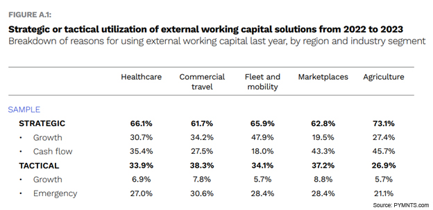 Healthcare and agriculture firms are the most prevalent users of working capital for strategic means.
