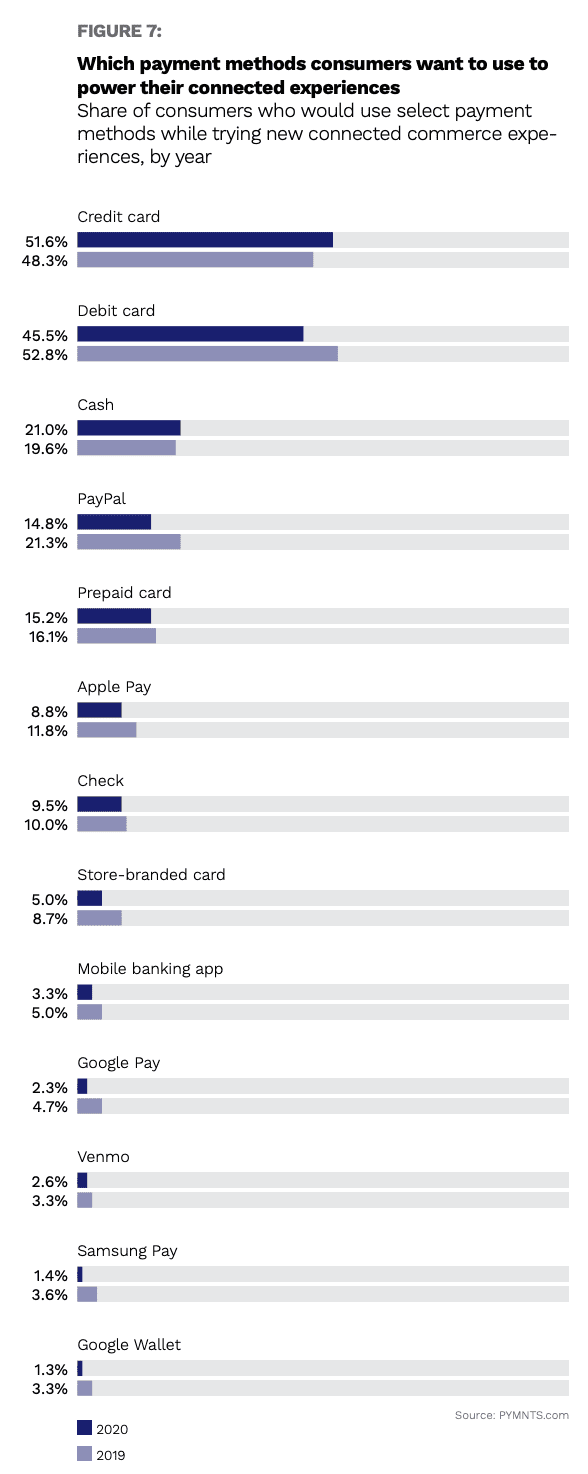 More eye-opening still is the fact that 23 million consumers made purchases using voice assistants, including Amazon’s Alexa and Google Home. “This means that the share of consumers making purchases … via voice assistant is up 42 percent since 2018 and up 10 percent since 2019,” according to How We Will Pay.