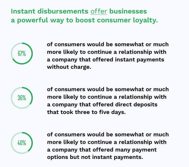 Nearly 7 in 10 workers said they would be more likely to stick with an employer that offered instant disbursements for free.